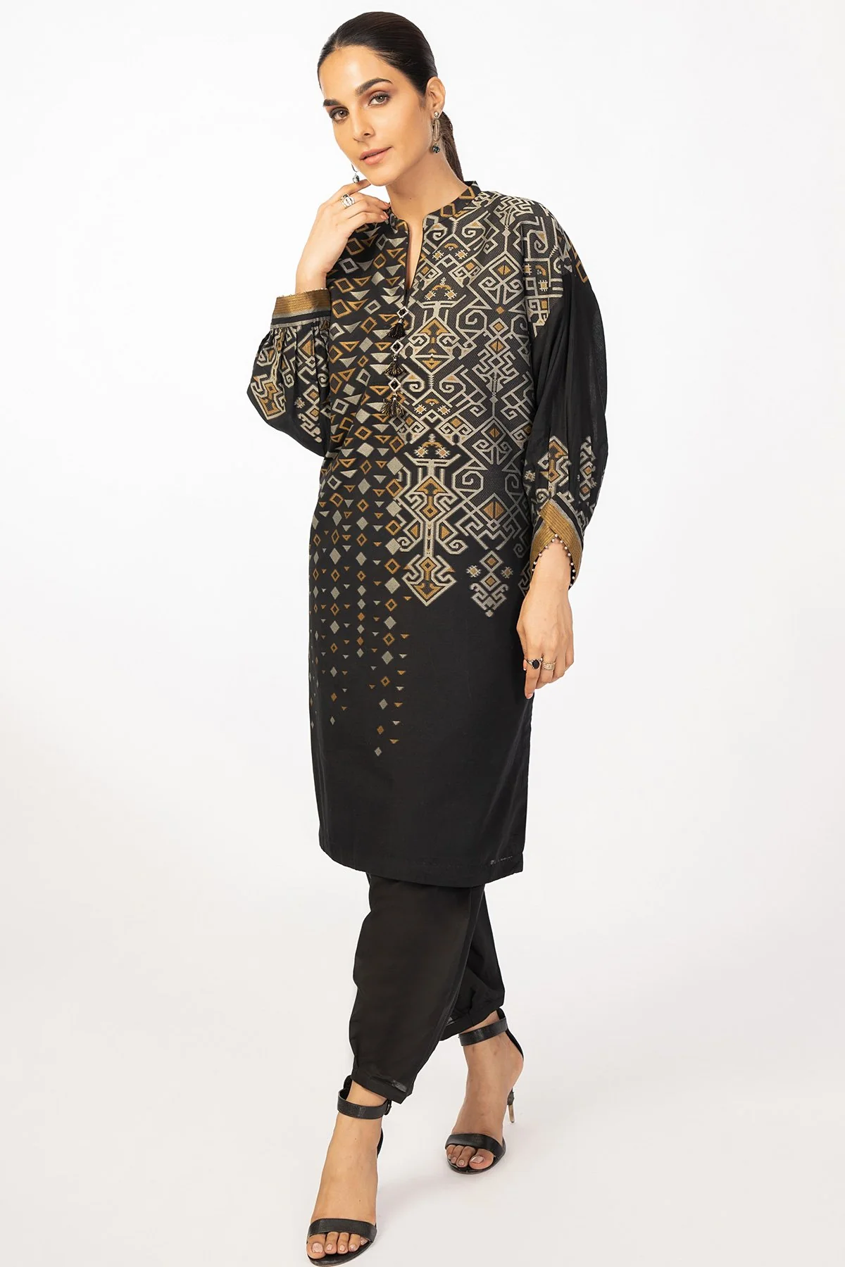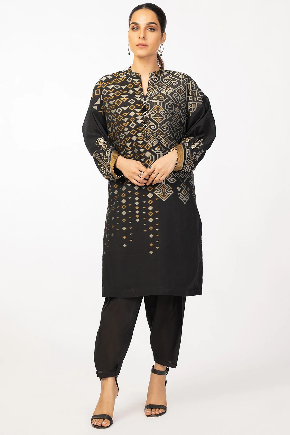 AlKaram 1Pc Jacquard Shirt MS 45 Black