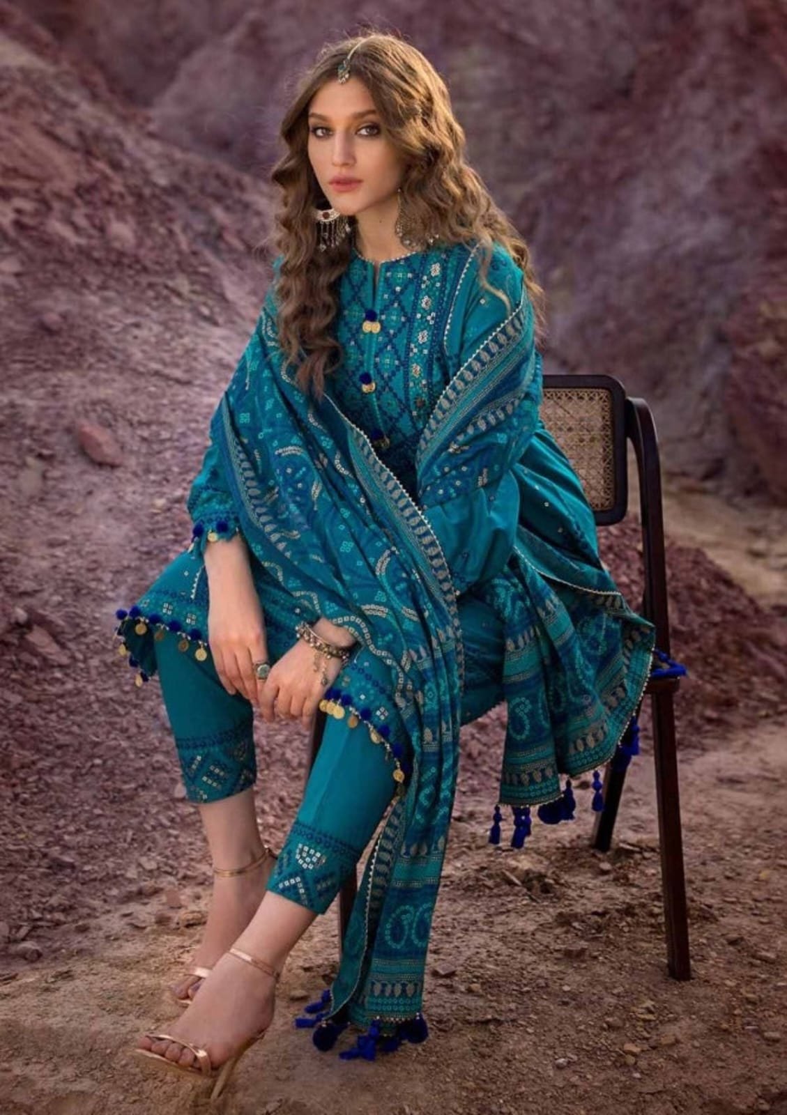 - Sequins Embroidered Lawn Shirt Front Panel, Side Panels & Sleeves With Sequins Embroidered Border For Front. Dyed Back – 3.19 Meters