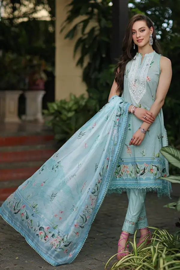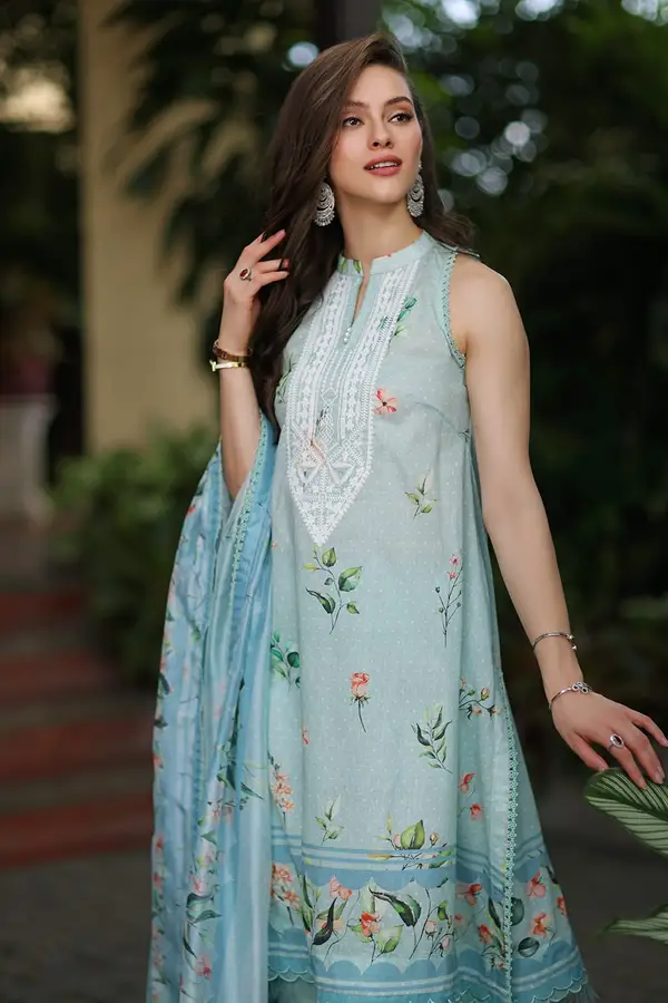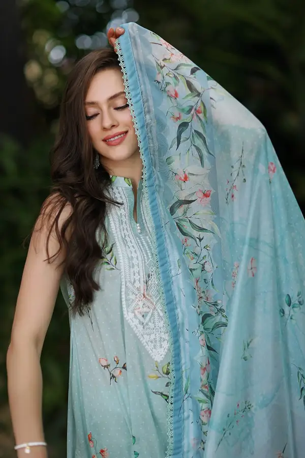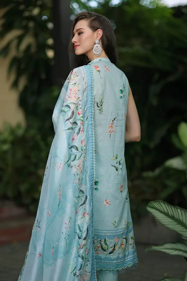 - Digital Printed Lawn Shirt With Embroidered Neckline On Organza – 3.00 Meters
