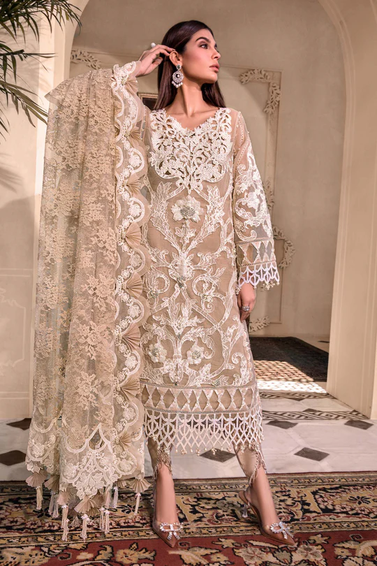 Maria B. Unstitched MBROIDERED - Pearl White, Peach & Aqua (BD-2408) ₨ 26,890